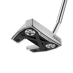 The evolution of Scotty Cameron’s Phantom X 5.5 continues with his latest creation, inspired by Justin Thomas’ prototype gamer, yet refined with a new, self-centering sole plate design, updated graphics and an all-new Pistolero Plus grip with a decorative, non-slip texture. The small slant—or “jet” neck—configuration remains unchanged, as do the solid face and body precision milled from 303 stainless steel and integrated with an updated aluminum sole plate and customizable stainless steel sole weights. This combination of heavier steel and lighter aluminum moves weight to the perimeter of the head, increasing MOI, stability and forgiveness.